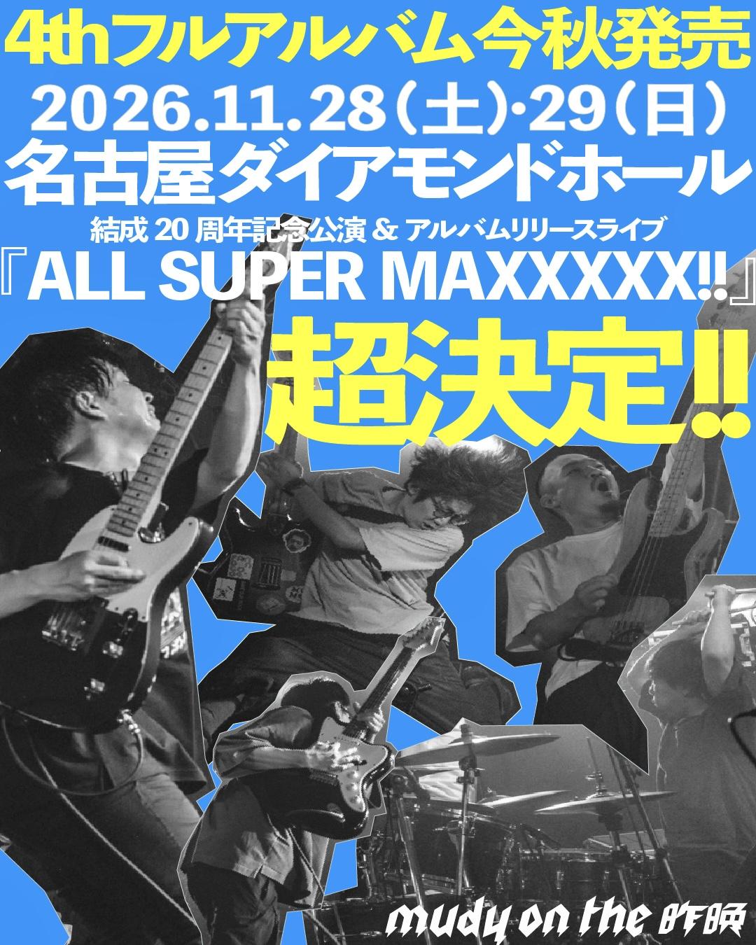そんな僕らは、新しいアルバムを作りました。制作期間は約2年。時間かかりました。毎日の仕事から帰った後、夜中に半分気を失いながらギターと格闘しながらせっせと作った曲たち。まがりなりにも40年生きてきて音楽を聴き続け、曲を作り続けてきたからこそ出来た、過去最高傑作だと、これも妙な自信を持って言えます。そして、このタイミングしか無いと感じたので、11月28日29日、地元名古屋でデッカい祭りを開く決心がつきました。正直、身の丈に合ったキャパシティの会場ではないです。でも、僕らにはこの20年で、信頼する仲間や尊敬する先輩、後輩のバンドがたくさん出来ました。mudy on the 昨晩のこれまでの歴史に欠かすことの出来ない盟友、多大な影響を受けたバンド、そして、これからに繋がるバンドを集めた盛大な祭りになります。絶対に皆さんに来てほしいです。既に素晴らしメンツが決まっています。アルバムも素晴らし内容になっています。